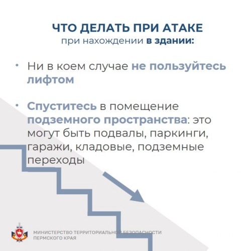 В случае необходимости эвакуации возьмите документы и предметы первой необходимости и начните продвигаться к выходу (не трогайте поврежденные конструкции и провода).