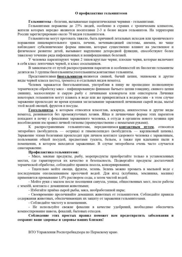 ПАМЯТКА О мерах, предупреждающих завоз и распространение холеры на территории Пермского края