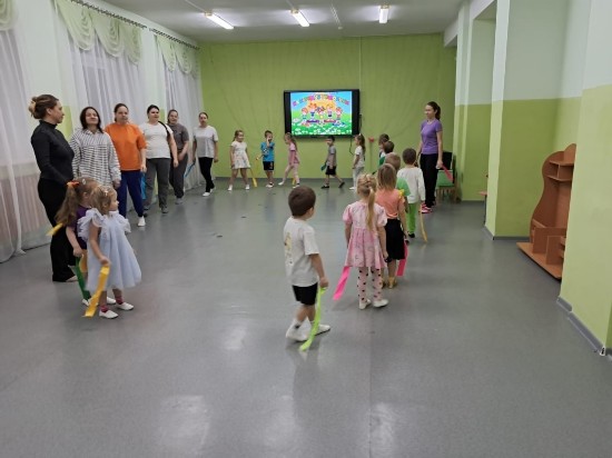 Воспитанникам старшей группы родители провели зарядку, а во второй половине дня прошёл физкультурный досуг с папами.