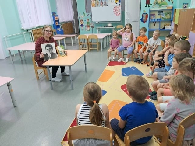 Воспитанники подготовительной группы вместе с родителями посетили библиотеку МБУК «ЧРЦБ имени А.С.Пушкина филиала № 6», где им рассказали про музей посёлка Калино.